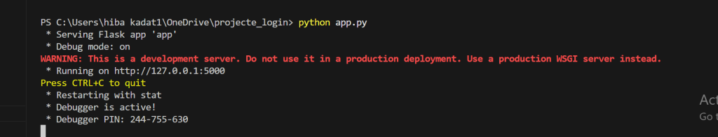 python app.py.Resultat: El servidor s’ha aixecat correctament a l’adreça local
