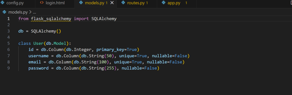 models.py, hem creat la classeUseramb els camps:id,username,emailipassword.Connexió: Al fitxer